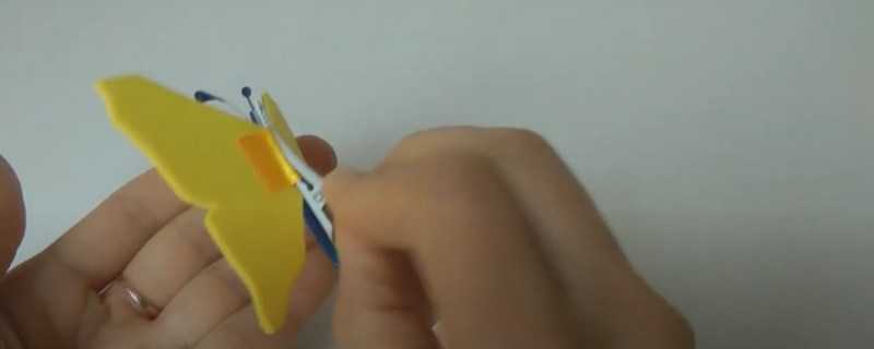 Сделанной заготовке бабочки требуется надежное крепление, исходя из ее практической надобности. Для этого из фоамирана вырезают под цвет резинки небольшой кусочек, соответствующий размеру середины бабочки, и приклеивают к крыльям с изнаночной стороны. Резинку нужно прикреплять именно к этой области.