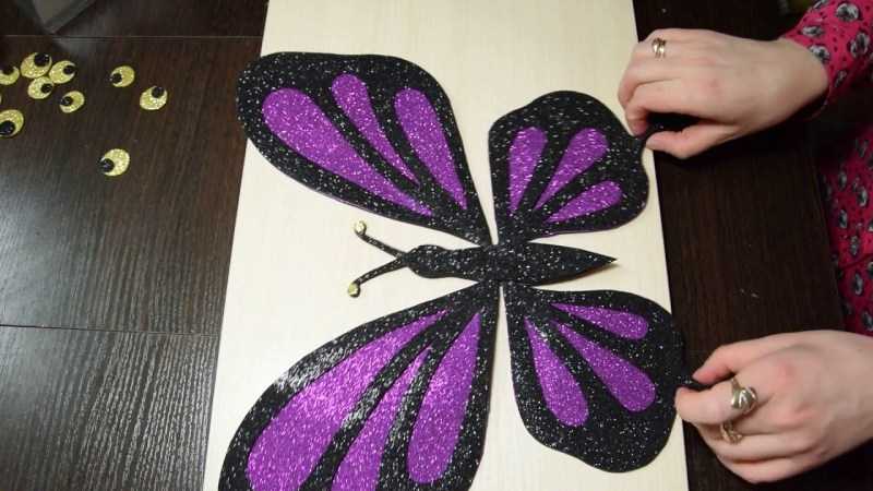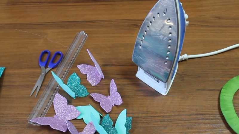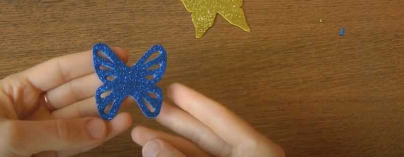 В соответствии с шаблоном бабочки из фоамирана, вырезают крылья и декорируют их на свое усмотрение.