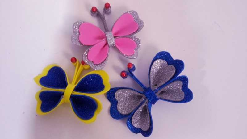 Если навевают скуку шаблонные резинки для волос, которыми хочется порадовать ребенка, то в данном пункте приводится легкий способ того, как сделать бабочку из фоамирана, которая может быть прикреплена на резинку.