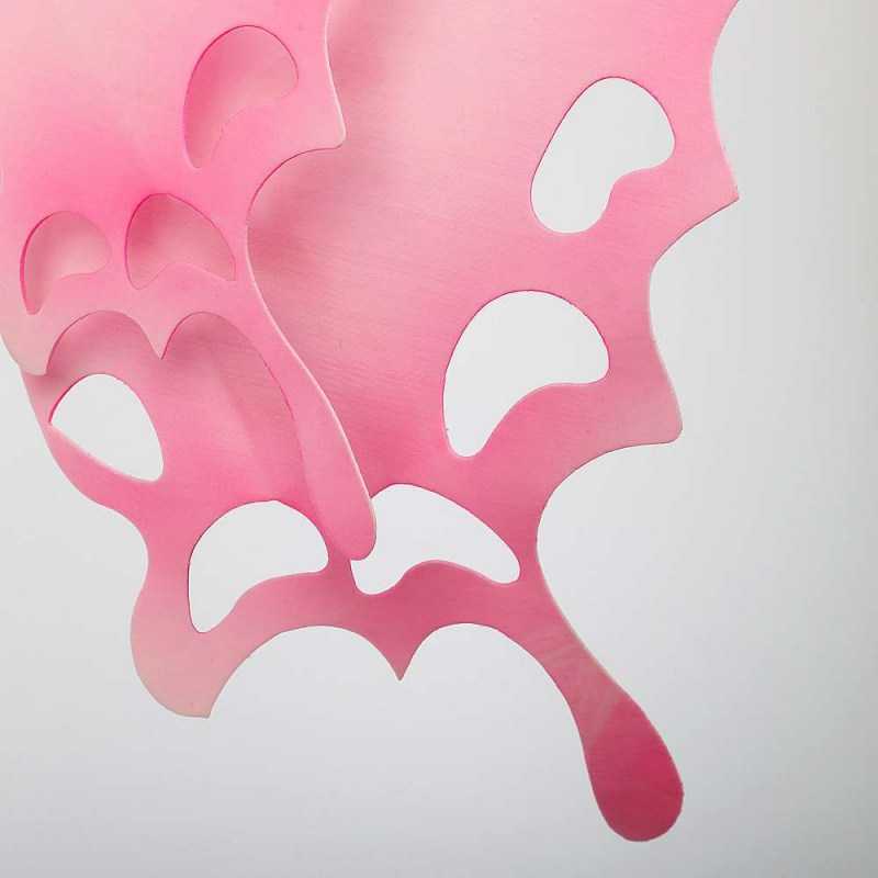 Следующим шагом нужно перевести на фоамиран точный силуэт выкройки крыльев бабочки и вырезать. Пастелью в цвет или отличающейся на пару тонов, изобразить тени на крыльях для художественной выразительности. Удобно будет тушевать кусочком губки.