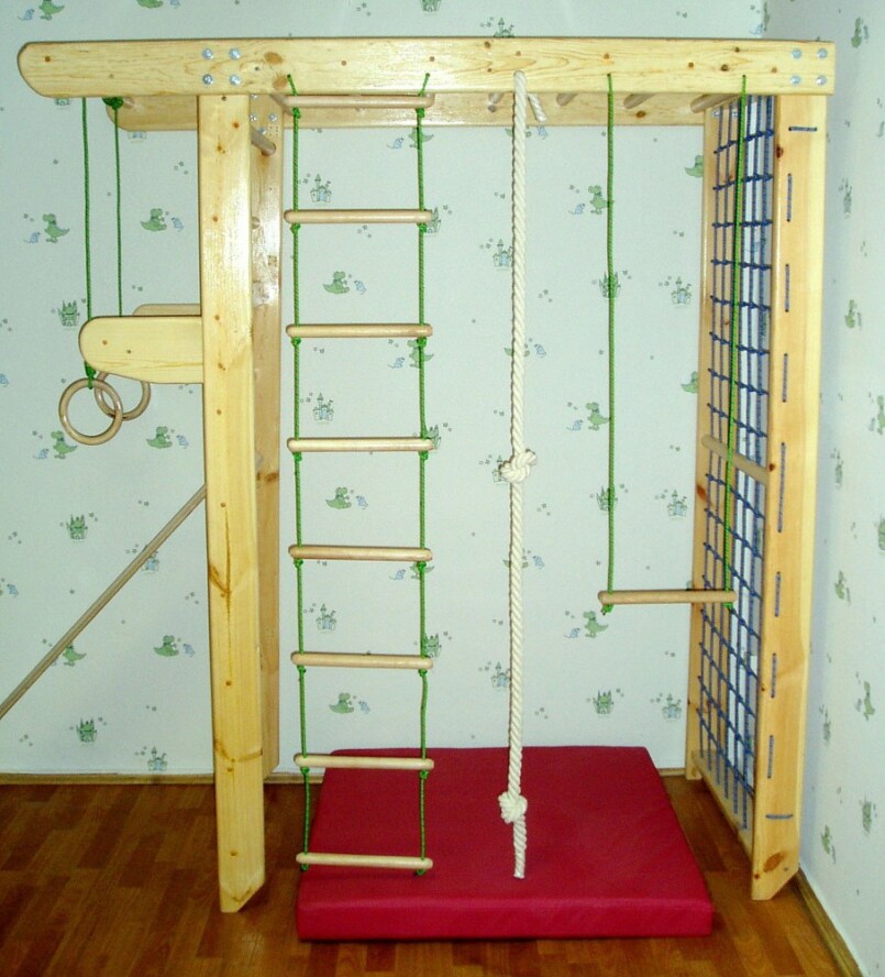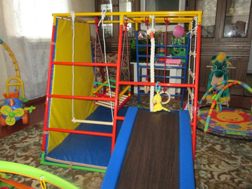 Если малыш обожает качаться на площадке, он точно обрадуется такой вещи и дома, а главное – никому не нужно уступать покататься. Обычно качели крепятся к потолку или в дверной проем, если место позволяет, то можно выбрать и отдельно стоящую модель.