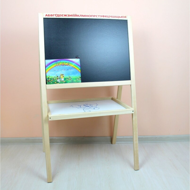 Лучше выбрать многофункциональный – с грифельной доской и креплениями для бумаги, тогда ребенок сможет рисовать и мелками, и фломастерами, и даже красками.