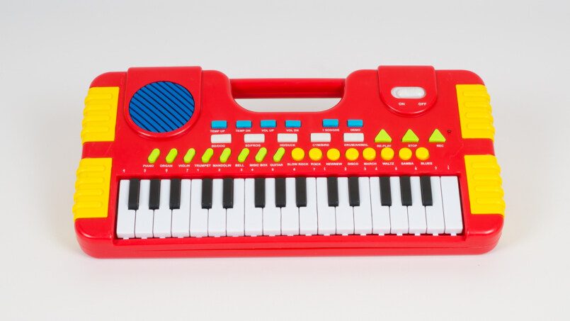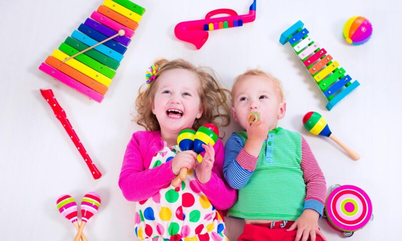 Синтезатор, ксилофон, дудочка или даже небольшая барабанная установка. Для развития слуха и фантазии предпочтительнее покупать механические игрушки без батареек.