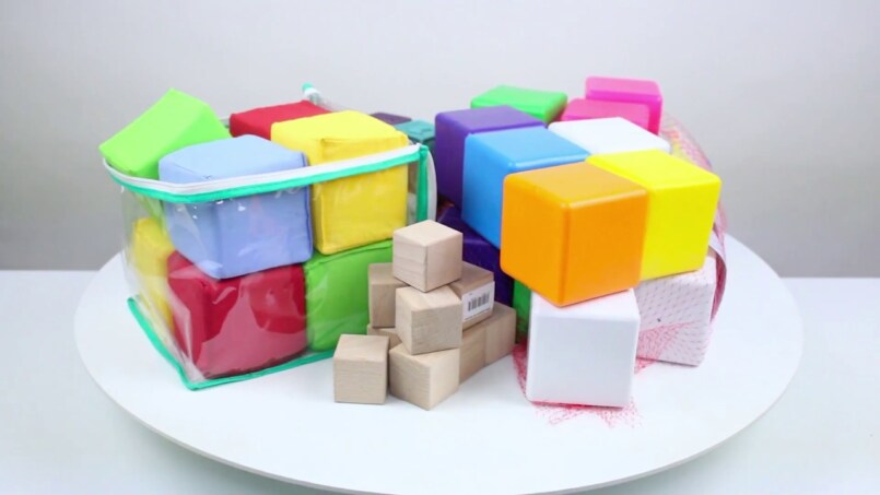 Многофункциональная нестареющая классика. Кубики могут быть из любого безопасного материала, с цифрами, буквами или просто с картинками.