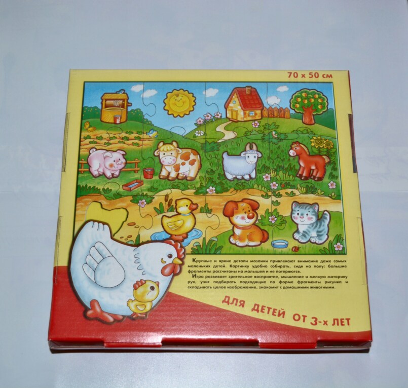 Мозаики для двухлеток обычно состоят из небольшого количества деталей, которые легко собрать в одну картинку. Лучше выбирать деревянные, поролоновые или из очень плотного картона, чтобы игрушка не стала одноразовой.