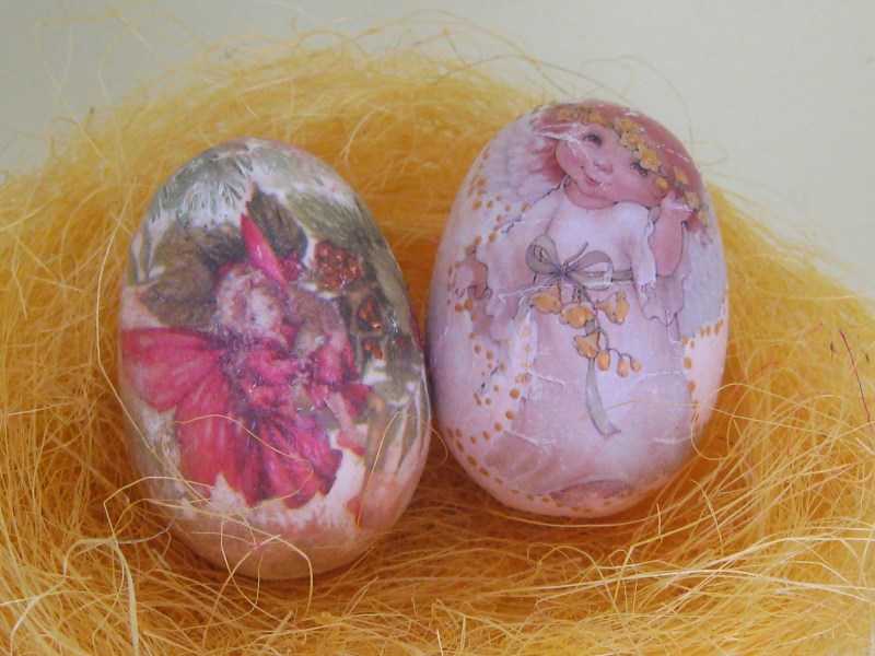 - После того, как изделие полностью высохнет, по технике прямого декупажа переносятся картинки с салфетки.
