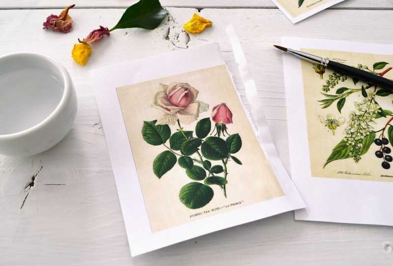 Прямой перенос – техника декупажа для начинающих. Делается очень просто, картинка прикладывается к готовой поверхности, после чего закрепляется лаком или специальным раствором для декупажа.