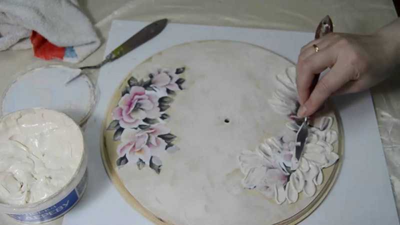 После ремонта может остаться небольшое количество гипсовой шпаклевки (в народе она известна как «вторичка». Это идеальное сырье для создания объемных изделий с помощью декупажа. Художники используют материал для оформления текстур, так как материал хорошо имитирует древесную кору, волны, небо и т.д.