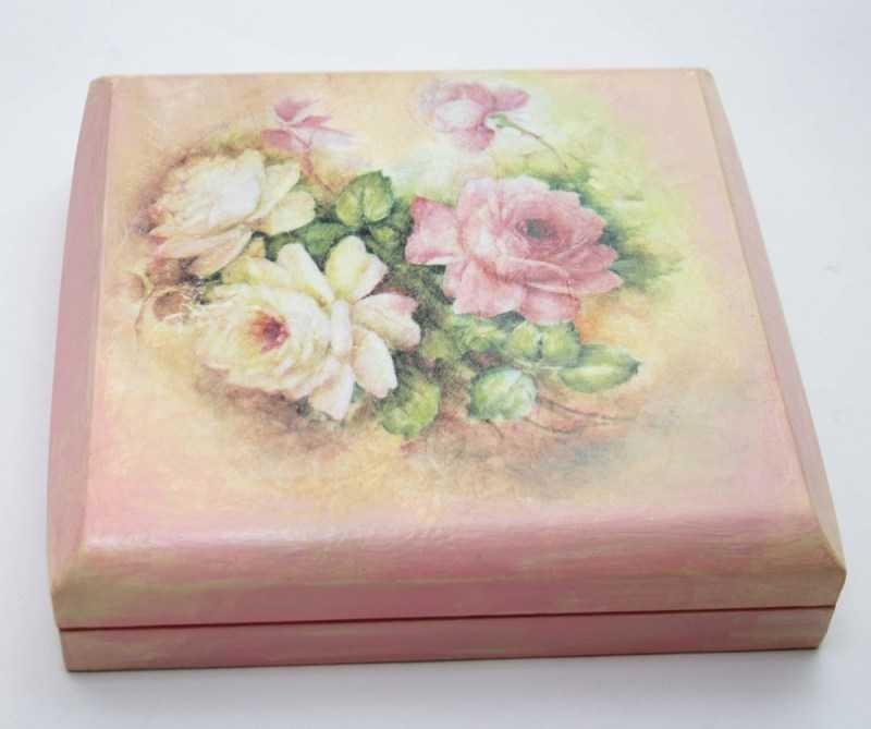 - Подготовка поверхности происходит по уже известной системе. В таком стиле обычно украшают и восстанавливают шкатулки и мебель.