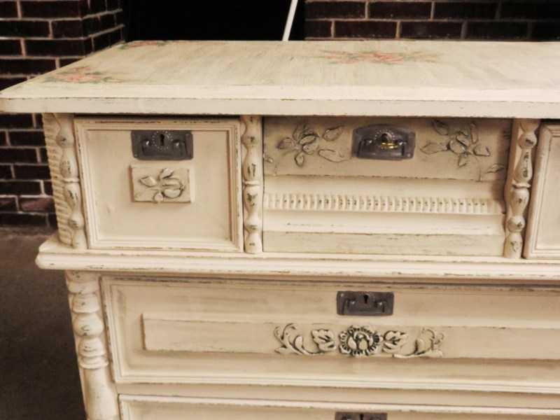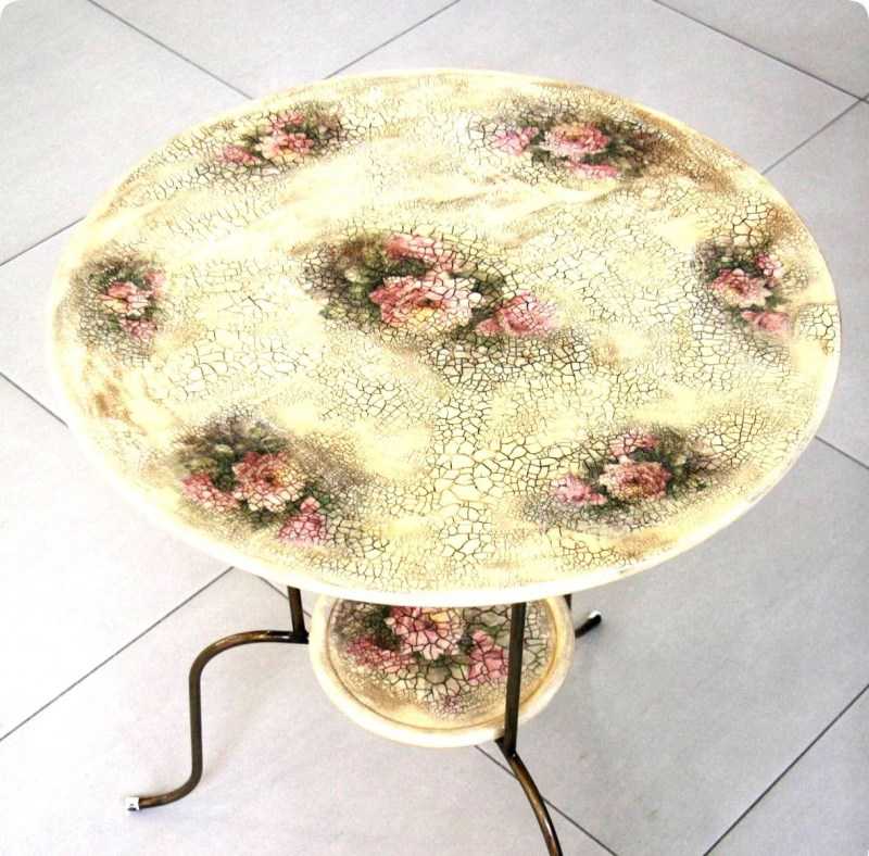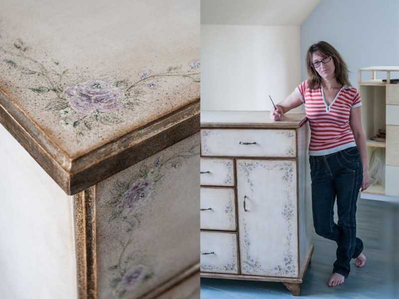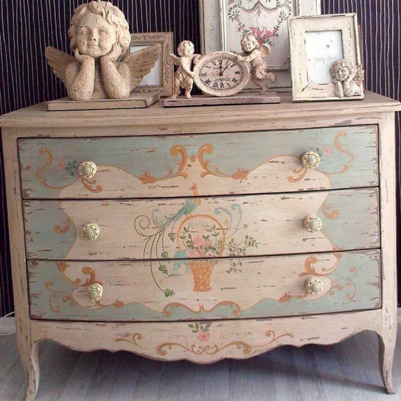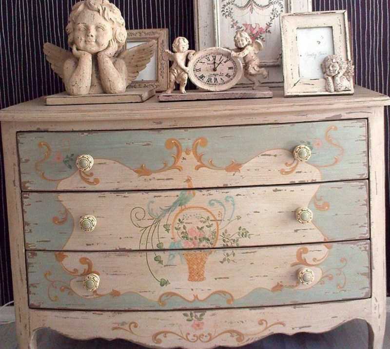 Для мебели в этом стиле обязательны потертости, трещины и некоторая размытость рисунка. Но чтобы результат выглядел привлекательно, все эти «изъяны» должны быть не случайными и естественными, а заранее продуманными и тщательно исполненными.