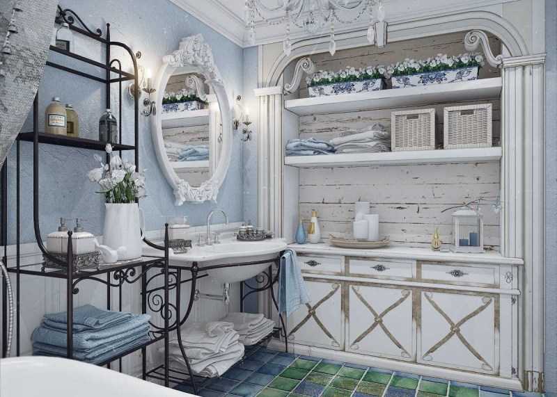Узкое направление деревенского стиля – отображение или имитация интерьеров французской глубинки. Этот стиль узнаваем по светлым поверхностям, рисункам цветов и душистых трав; очень распространено использование для декора цветов лаванды.