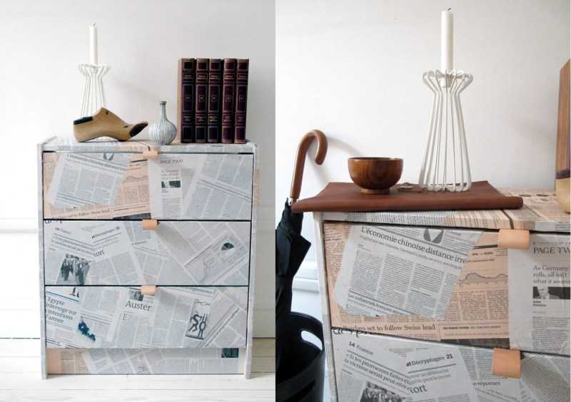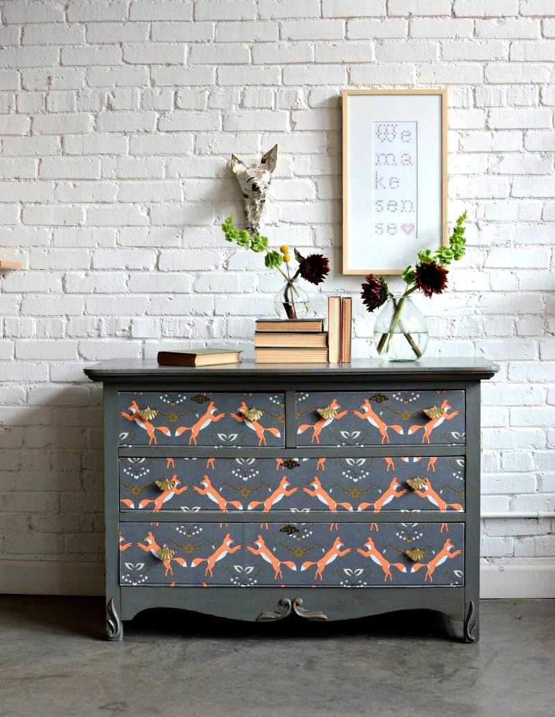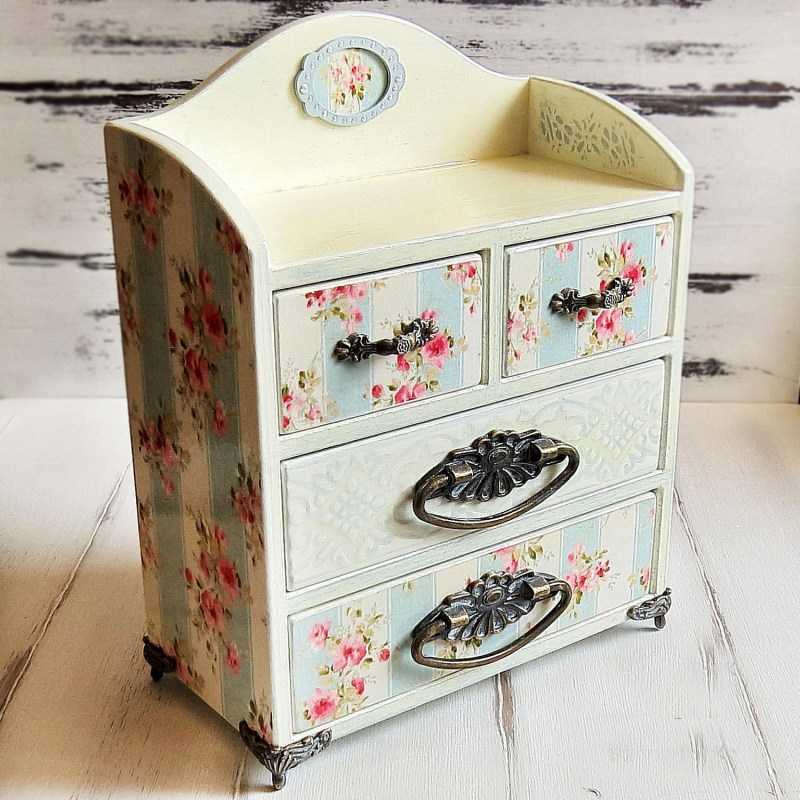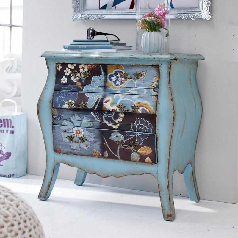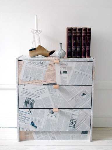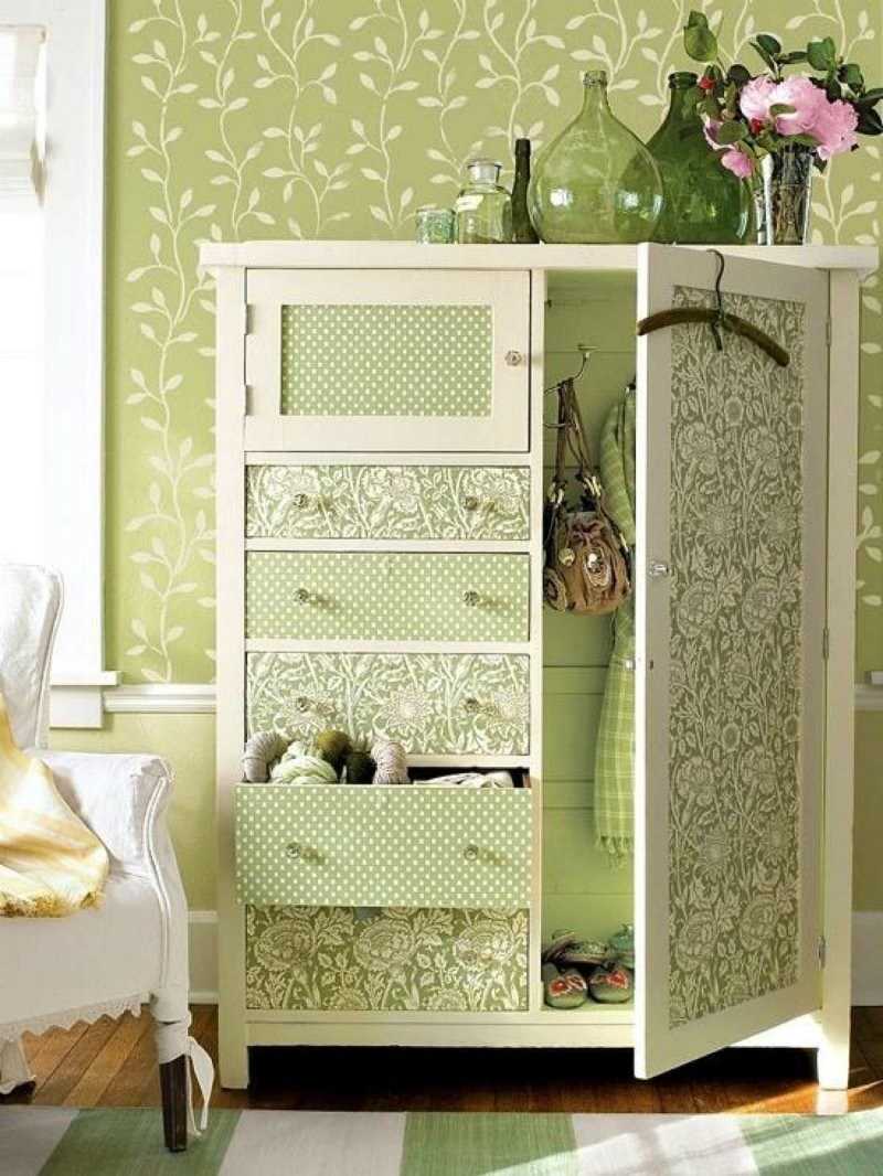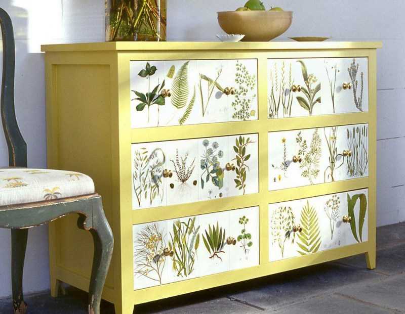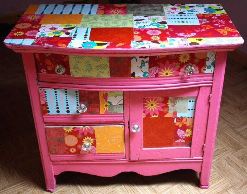 Такой предмет мебели, как комод, увеличивает возможности для реализации фантазии. В нем, как правило, есть несколько ящиков, которые можно оклеивать внутри и снаружи, одинаково и по-разному, целиком и фрагментами.