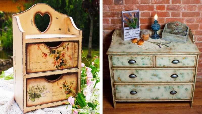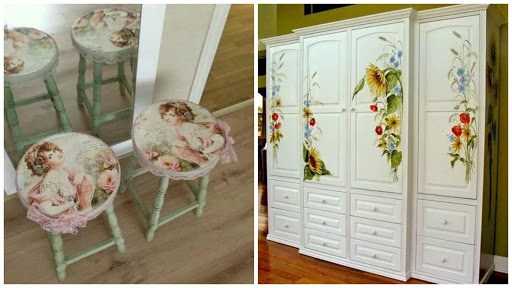 Среди рукодельниц популярны такие стили декупажа мебели: