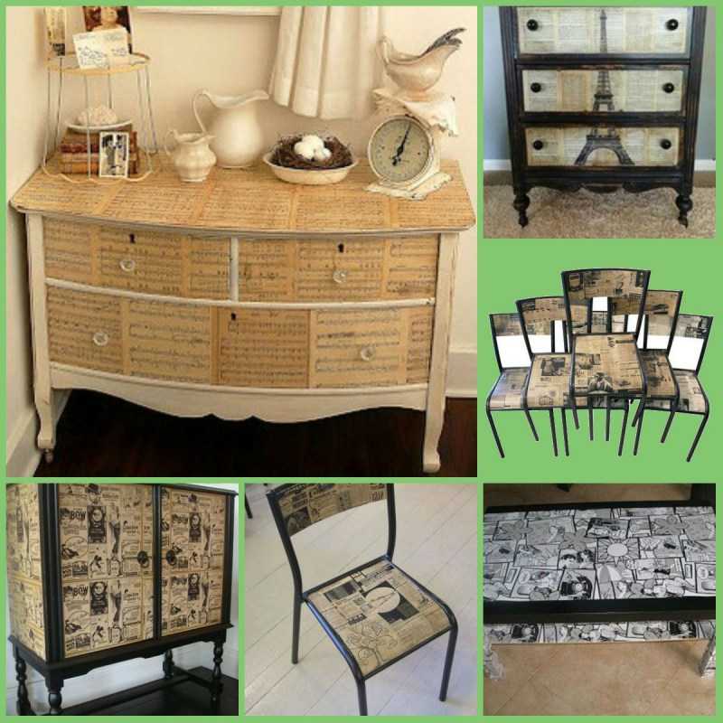 Оставлять на мебели картинки «из прошлого» в последнее время становится все более модно. Разнообразие винтажных сюжетов велико. Это праздничная тематика (Рождество, Новый год, Пасха), старинный транспорт (от дирижаблей до автомобилей), изображения детей и открыточных ангелов, еда.