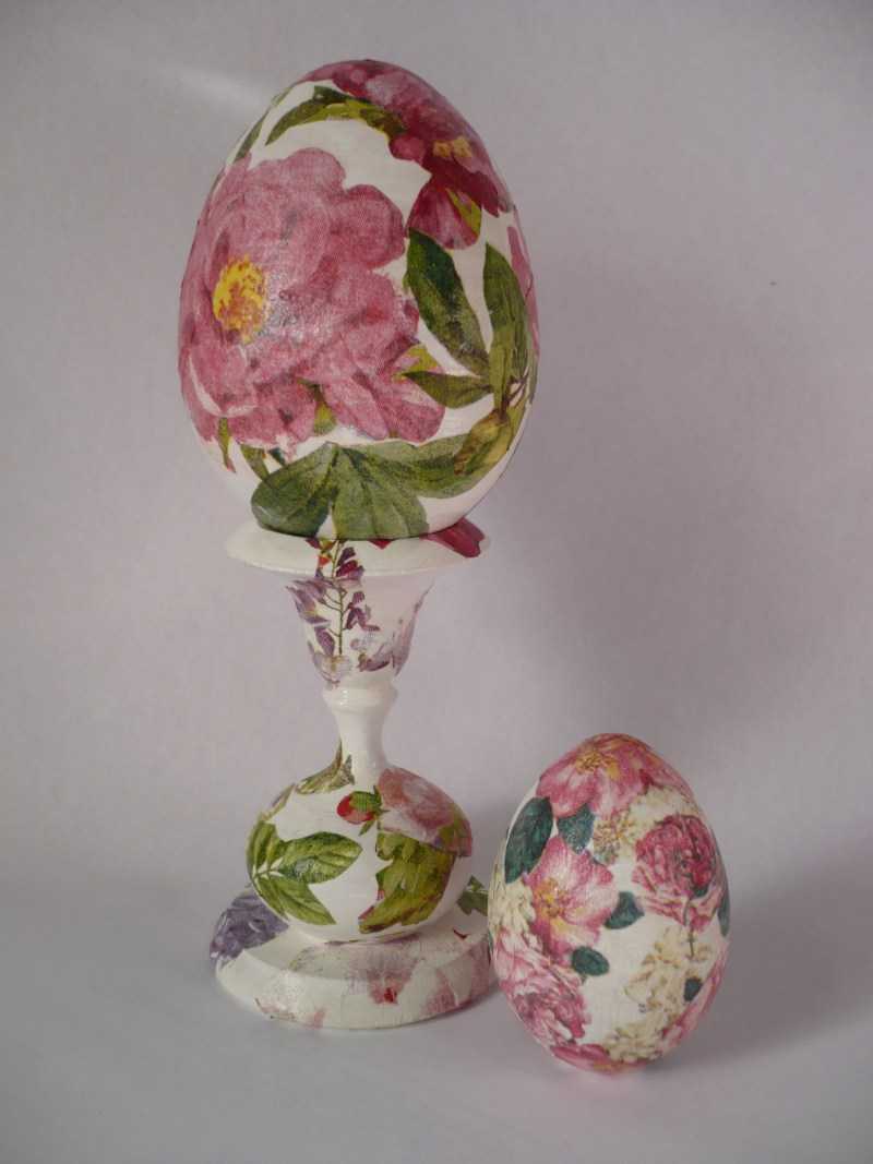 В преддверие пасхальных праздников возникает особая тема в декорировании предметов, в том числе и пасхальных яиц. Декупаж пасхальных яиц заключается в нанесении на предварительно сваренное яйцо красивого орнамента.