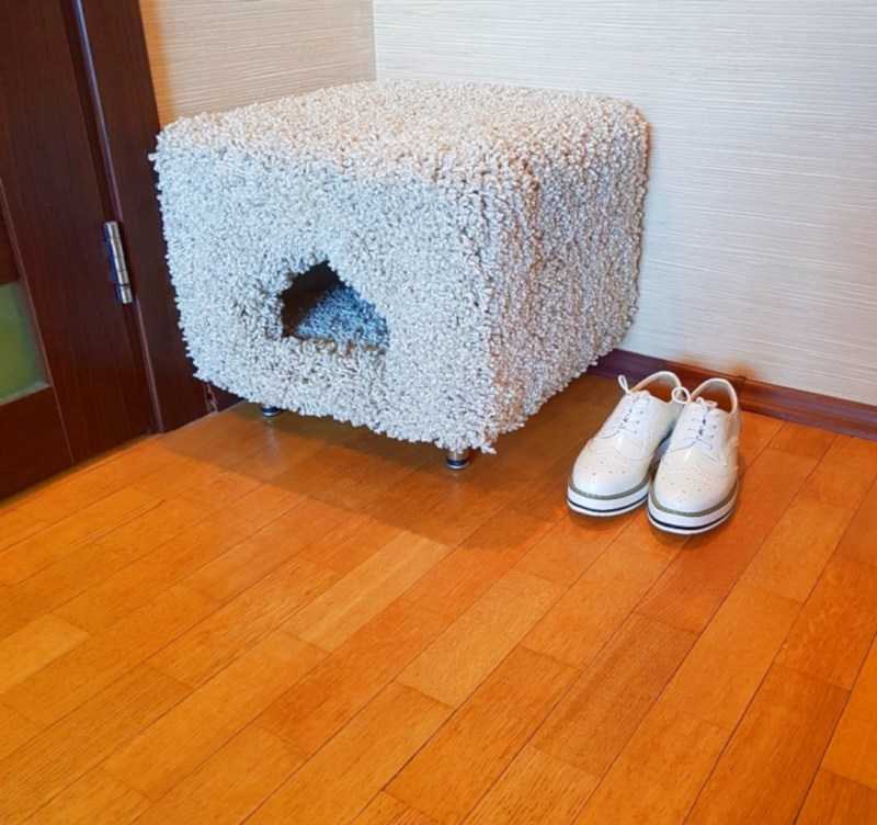 У многих дома есть обычные пуфы, которые продаются во всех мебельных магазинах. Такую конструкцию легко трансформировать под нужды нового жильца, создав настоящие апартаменты для любимого животного.