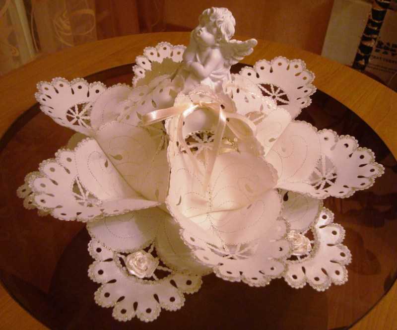 Лепесточки нужно склеить в основании, затем по кругу приклеить их к основе. Элементы в подобной поделке могут иметь и другую конфигурацию – всё зависит от воображения рукодельницы.