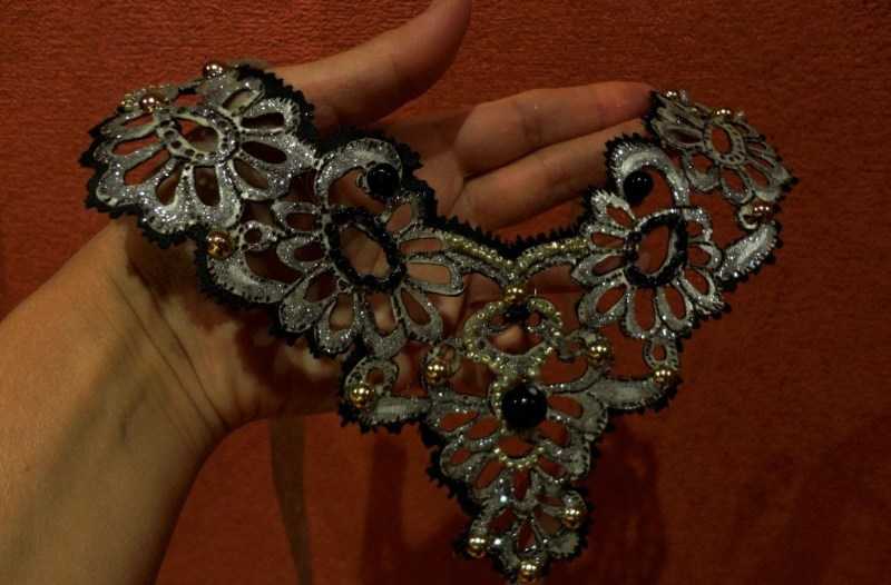Кружевная салфетка с серебряными вставками