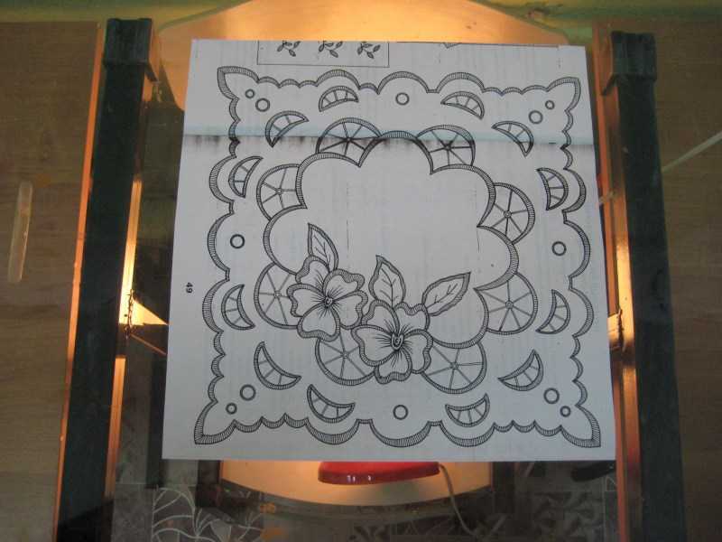 Для лучшего просматривания узора рекомендуется использовать световой стол. Однако допускается переносить изображение и через оконное стекло.