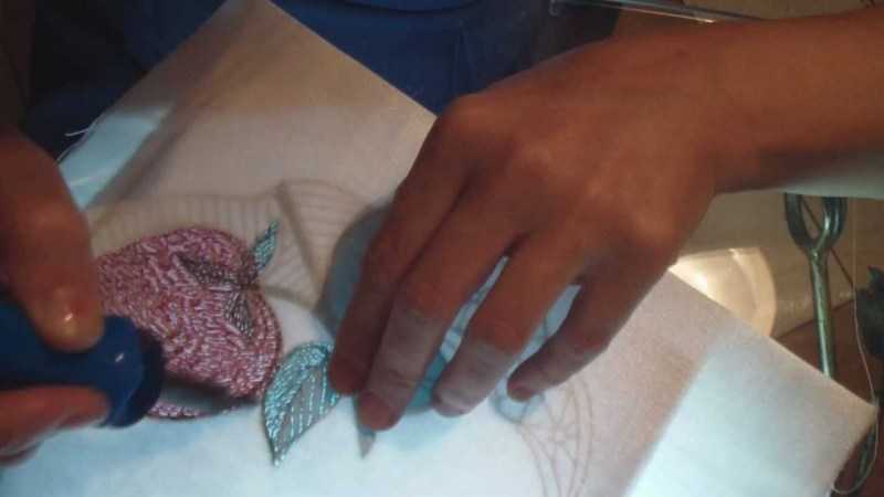 - прикладывание лоскутка к узору и закрепление инструментом со всех краёв;