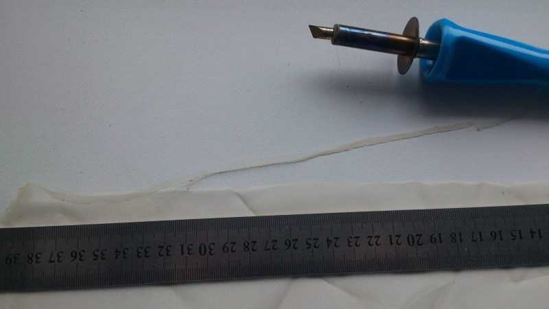 На кончике прибора в ходе работы накапливается расплавленные волокна материи, вследствие чего ширина каждого последующего фрагмента орнамента будет больше. Поэтому необходимо постоянно наблюдать за иглой аппарата, чтобы успевать во время очищать её лезвием.