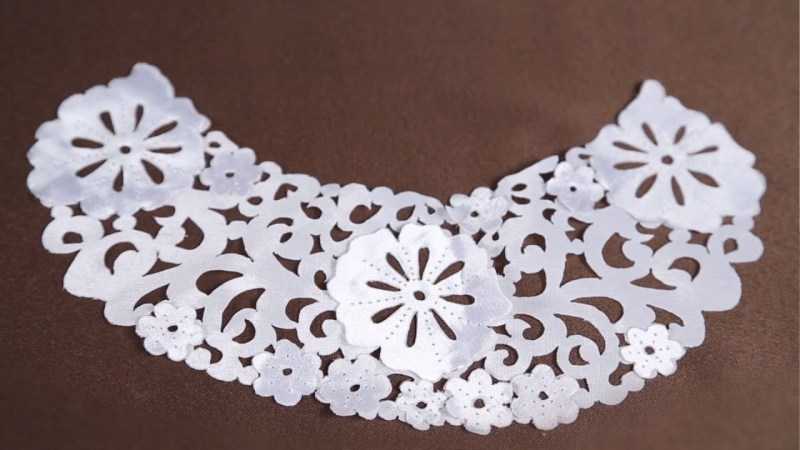 Гильоширование – выжигание рисунка по ткани. Техника требует использования особого инструмента. Финансовые затраты полностью окупит красота сделанных аксессуаров, штор, салфеток, скатертей, панно. Тканевые цветы, изготовленные с применением такого метода, будут казаться невесомыми.