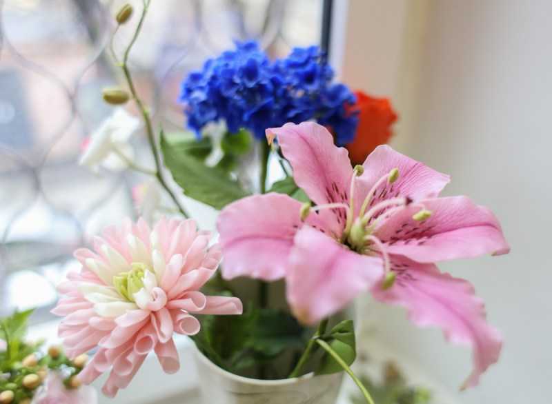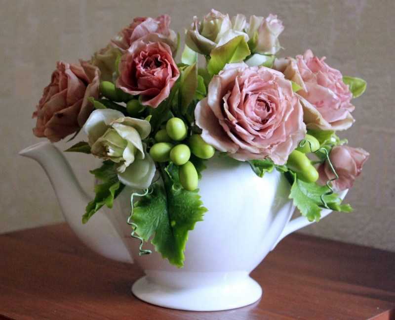 Цветы из холодного фарфора стоит убирать в надежные места, так как материал очень хрупкий и легко может повредиться.