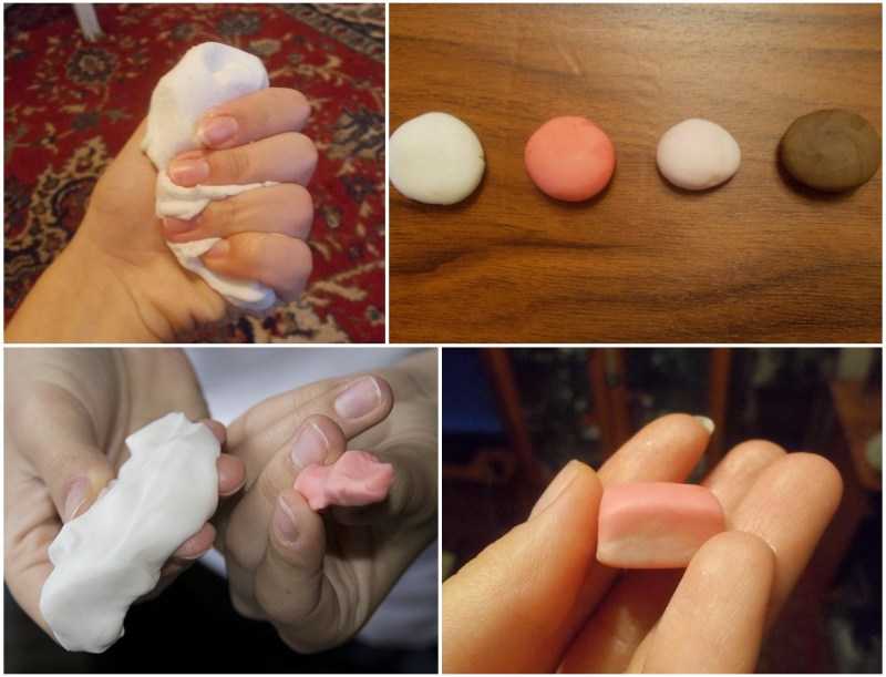Достать массу и мять руками несколько минут. По желанию можно добавить красители и начинать делать поделки из холодного фарфора.
