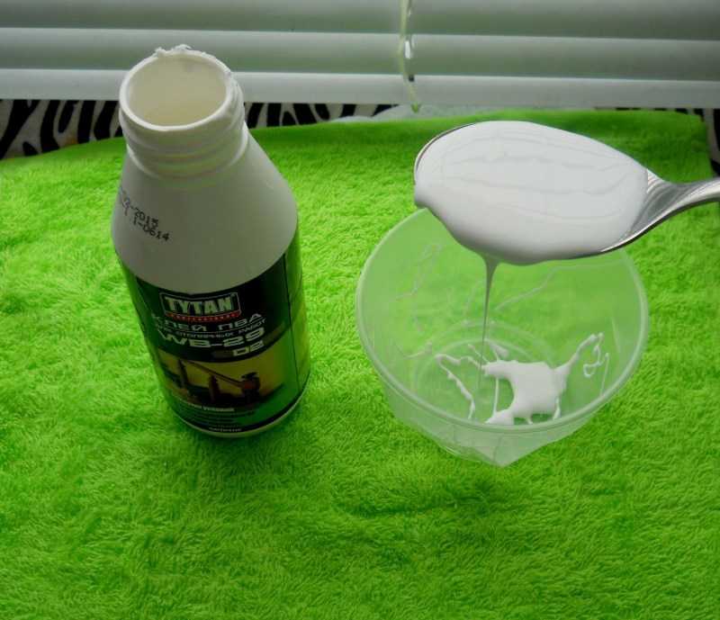 Шаг 3. Налить один стакан клея (лучше использовать мебельный). И все очень хорошо перемешать.