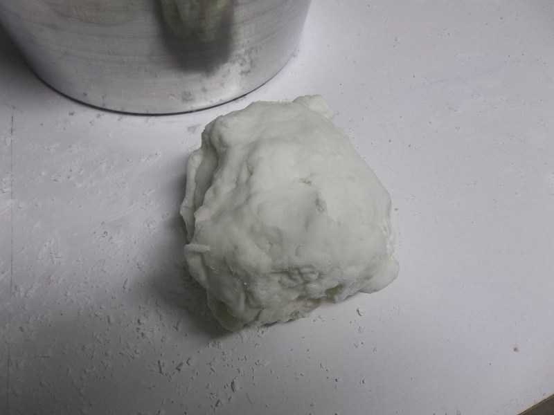 Небольшими порциями ввести 3 столовые ложки клея. Тесто готово к использованию. Необходимо дать ему отдохнуть 5-10 минут.
