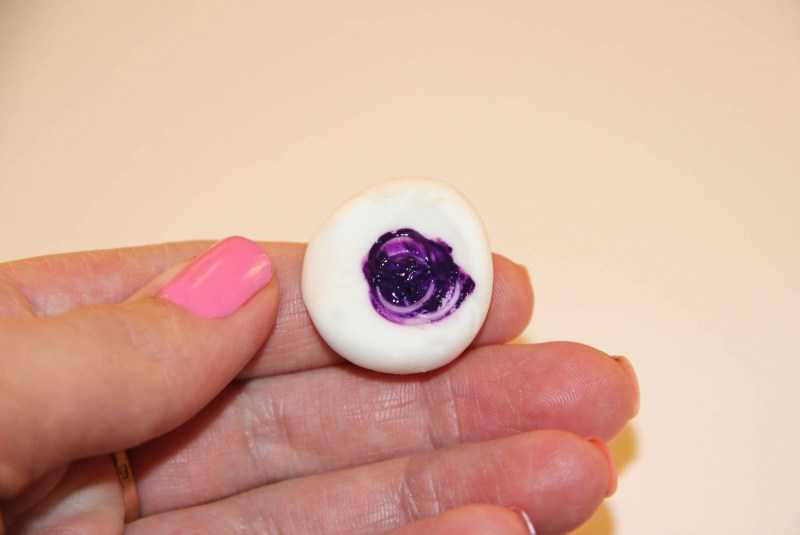 Смешать небольшую часть фарфора с масляной белой краской. Оформить шарик, диаметром примерно 1 см.
