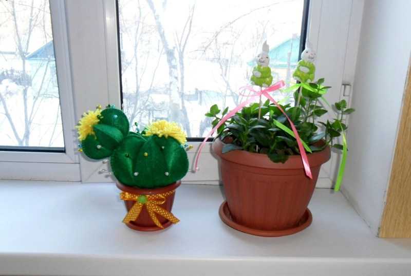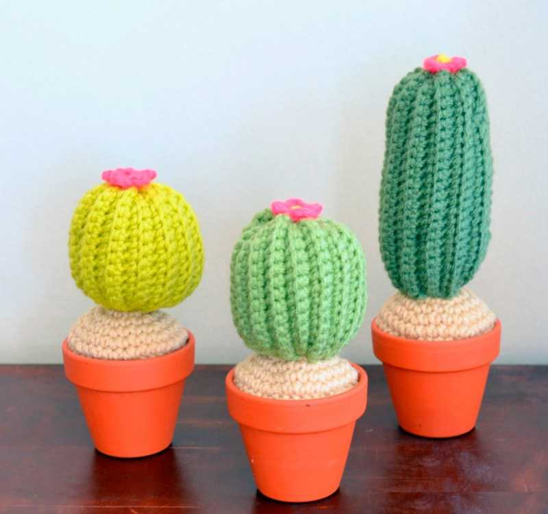 Кактус, сделанный при помощи вязки, станет отличным украшением рабочего места. Вяжут его крючком, который обязан подходить по своему номеру к подобранным ниткам.
