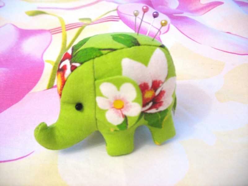- Прострочить обе части слонёнка, оставив отверстие для набивки.