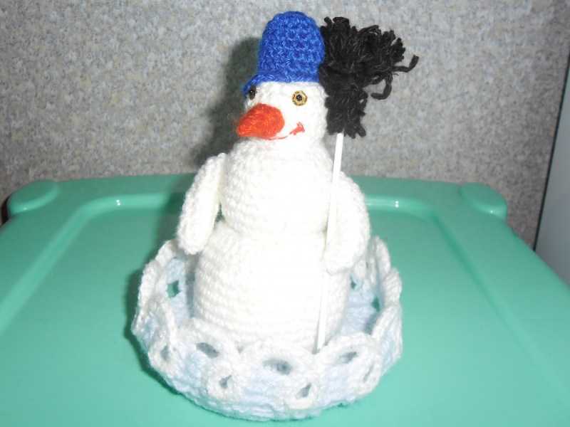 - 1 ряд состоит из 3 в. п., столбиков с накидами и соединительного столбика (вяжется кирпичной нитью);