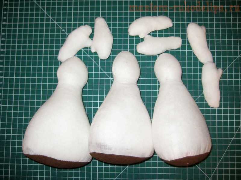- При необходимости прогладить заготовку горячим утюгом и наметить части тела игрушки. Снеговик из двух частей будет устойчивее и красивее.