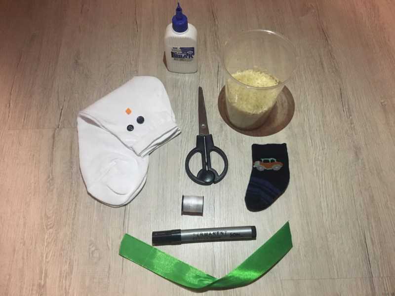 Для создания игрушки рекомендуется взять несколько носков, нарезать их на одинаковые заготовки, соединить ручными швами.