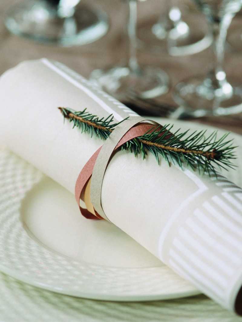 В итоге вырисовывается лесная красавица в виде устойчивого конуса. Это гораздо лучше, чем красиво сложенные салфетки в салфетницу. Причем макушку елки можно украсить бантиком.