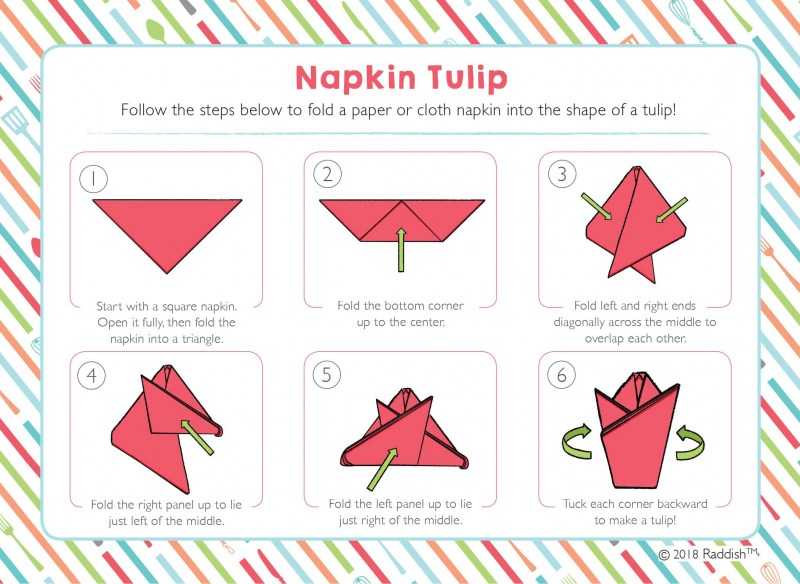 Из салфетки формируются не только забавные фигурки, но также практичные формы. Ярким тому примером является подставка. Чтобы выяснить, как красиво сложить салфетку схема расписана по пунктам: