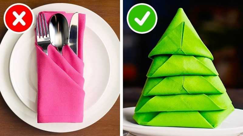 Зима дарит не только сказочную погоду, но также повод отпраздновать новогодние праздники. Так почему бы ни украсить стол салфетками в виде елок? Этот прием известен многим декораторам общепита и не только:
