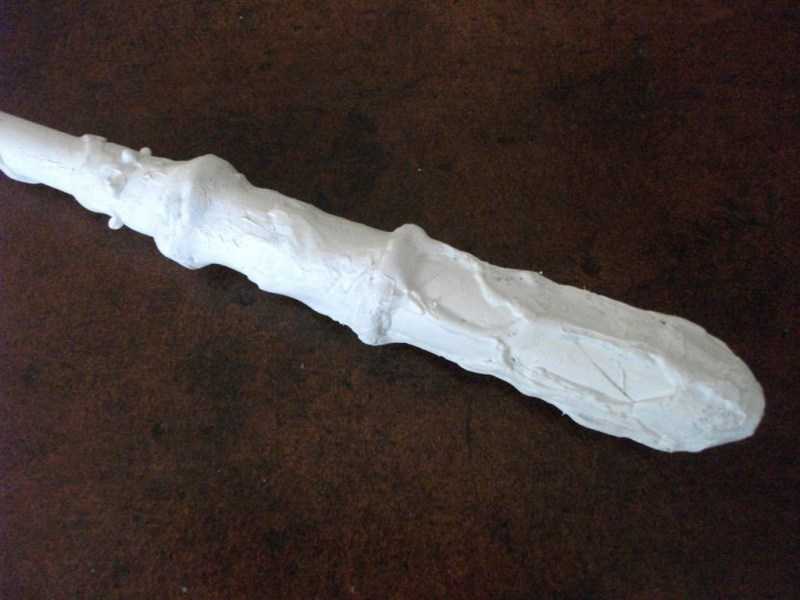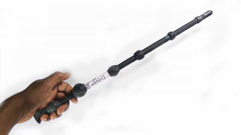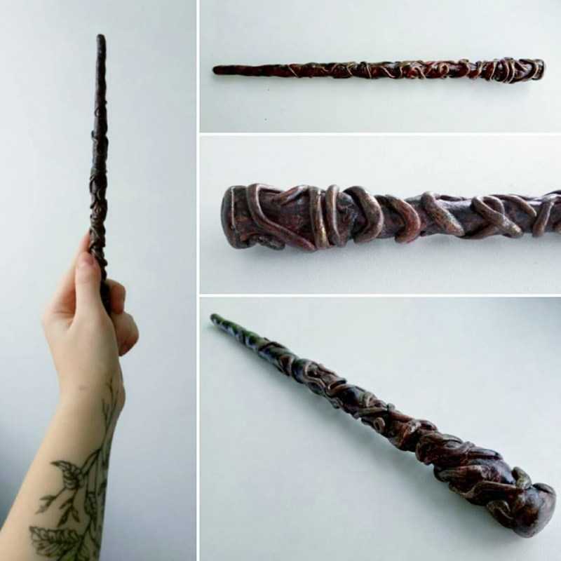 Краску нужно взять тёмно-коричневую, чтобы она была похожей на натуральный цвет тёмного дерева. Множество фото волшебной палочки можно найти в сети интернет, выбрать подходящий дизайн и воплотить его в реальность.