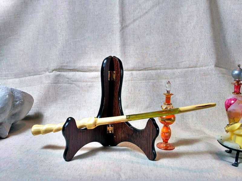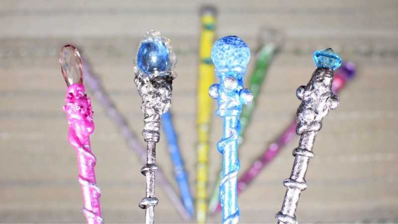 Можно покрасить палочку из дерева в любой понравившийся цвет, покрыть её лаком и блёстками. Но опытные маги предпочитают пропитывать её эфирными маслами и оставлять при полной луне, чтобы она вобрала в себя магическую силу и стала настоящим магическим проводником.