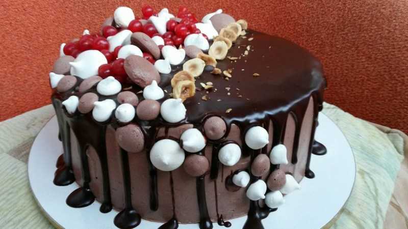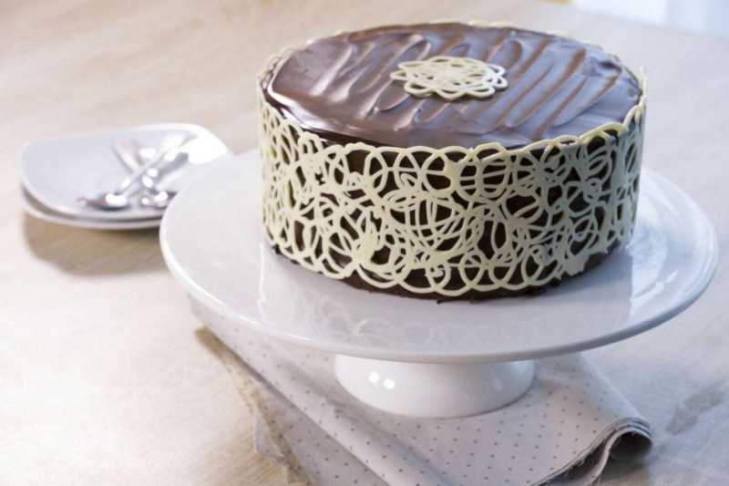 Украсить торт шоколадом по силам даже новичкам. Красиво смотрится оформление края, когда с верхнего коржа стекают шоколадные капли. Перед использованием торт обязательно остудить, а шоколадную глазурь брать уже слегка остывшую. Затем необходимо при помощи шприца вести по краю и через небольшие промежутки выдавливать больше, так чтобы получилась стекающая капля.