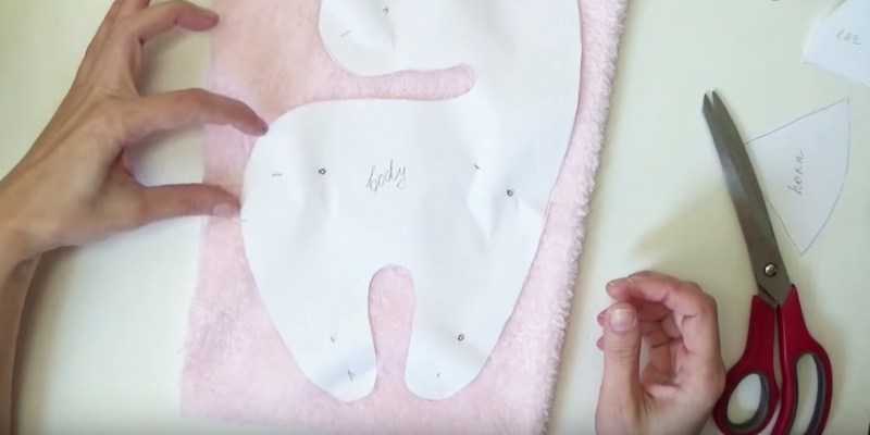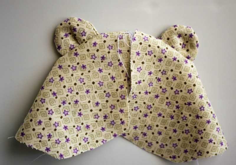 Следует помнить про уши – их зашивают в определенных местах (лучше предварительно скрепить все булавками, это облегчит дальнейшую работу).