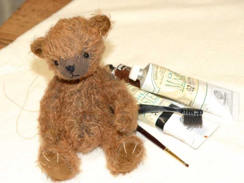 Таким образом, швы будут точечными, и клубок нитей будет проходить внутри медведя. Наконец, плюш вытаскивается из-под швов. Все будет красиво скрыто.