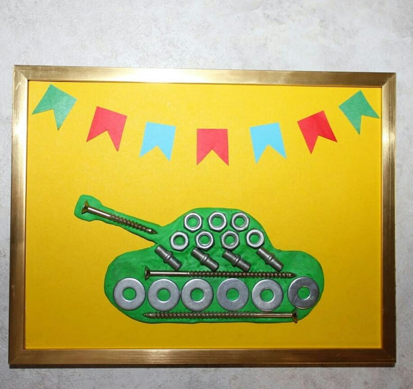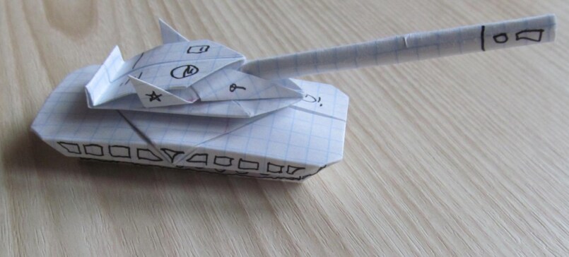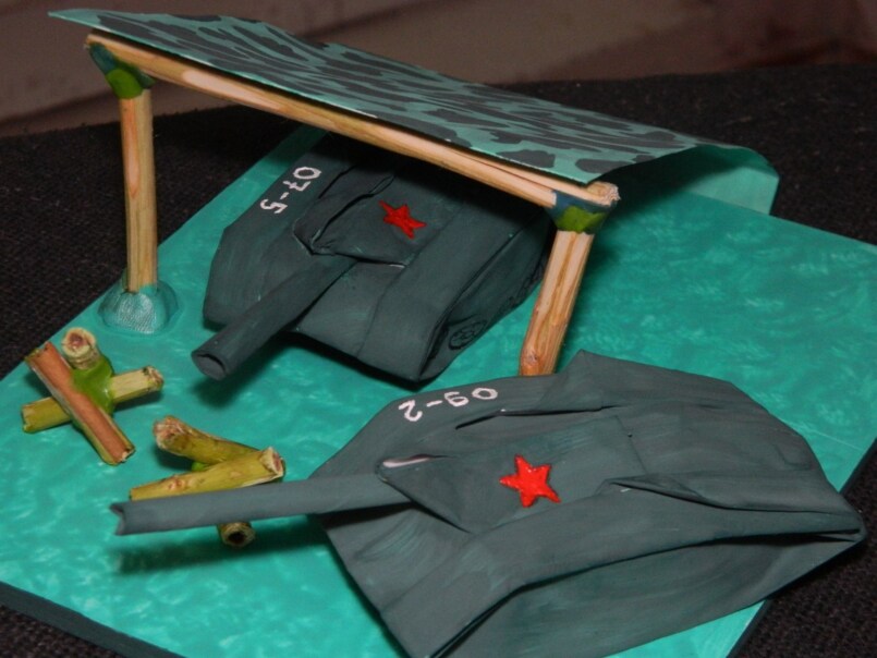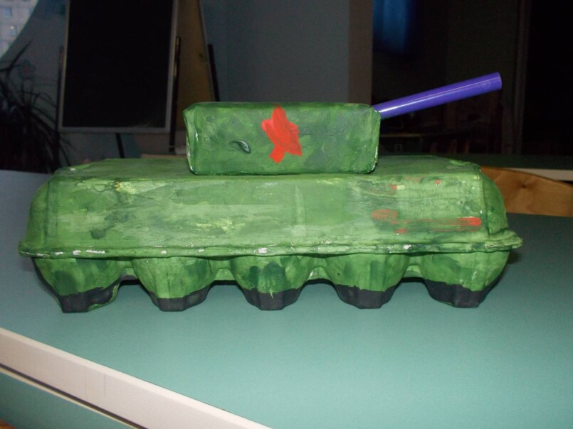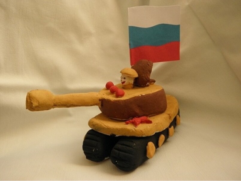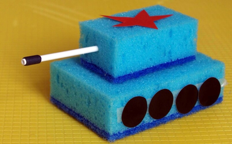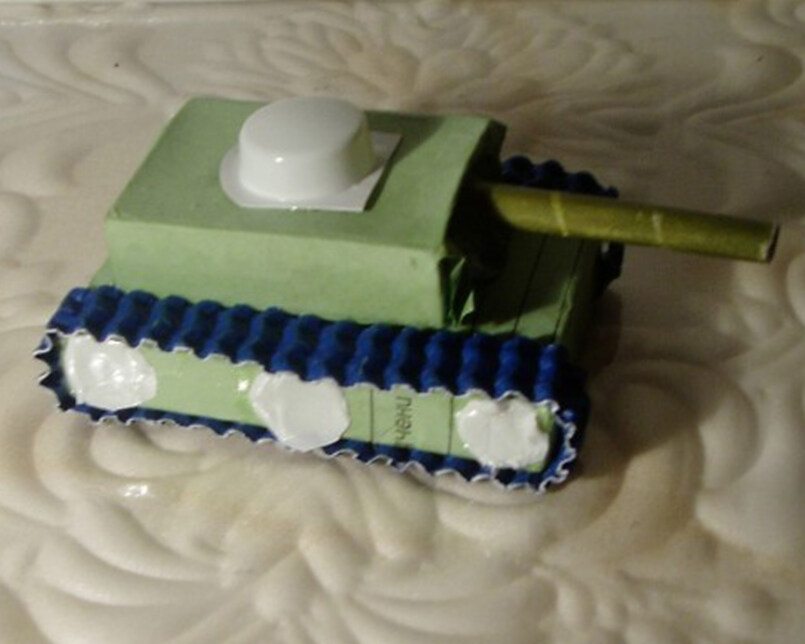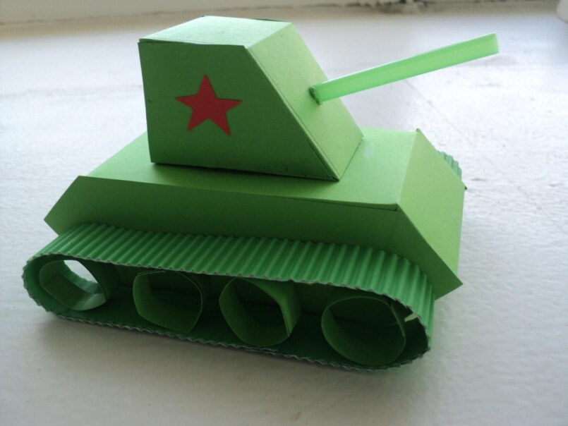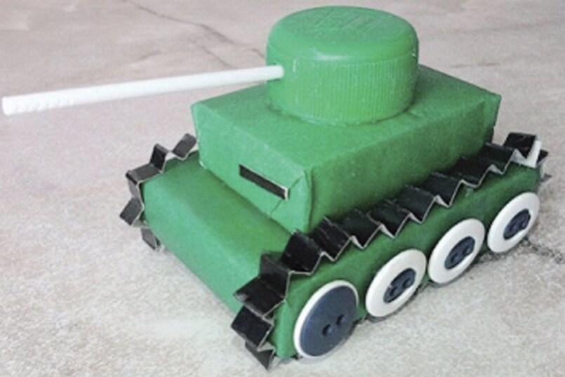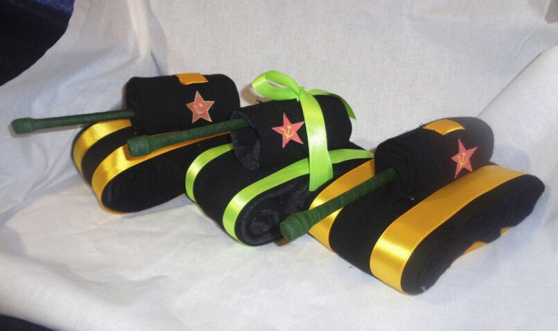 Другим вариантом изготовления подарочной военной техники своими руками из подручных материалов является тоже танк, но уже изготовленный из носков.