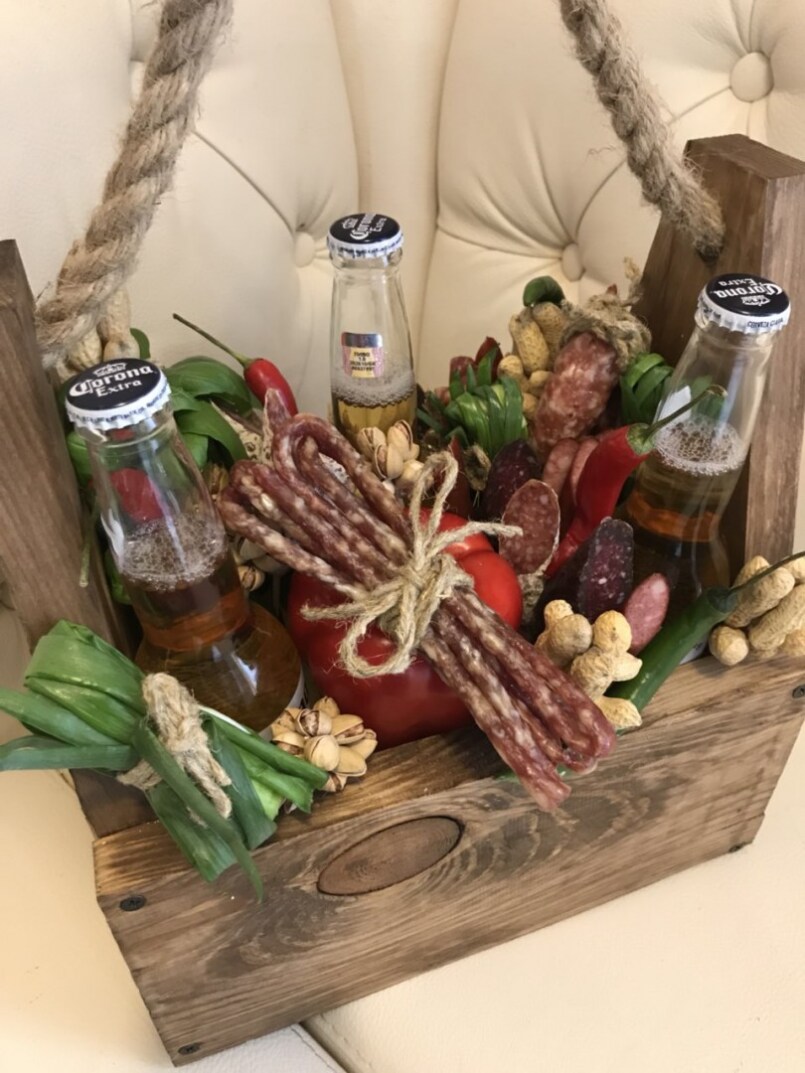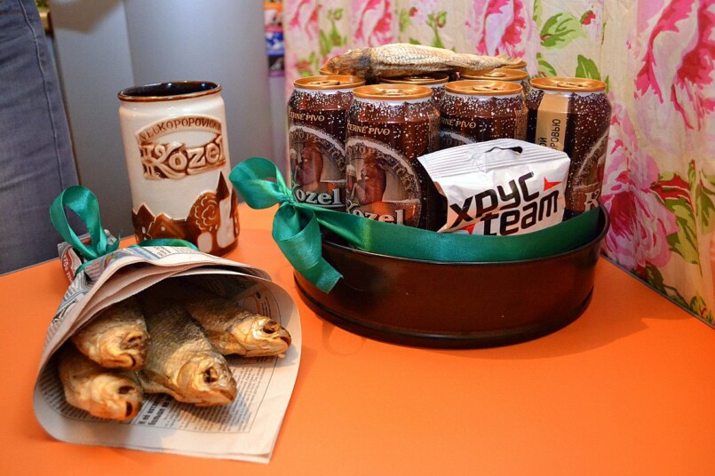 Содержимое подобного букета впечатлит каждого мужчину, любящего пенный напиток — пиво. Смотрится такой подарок необычно, а делать его очень легко. С этим процессом справится даже новичок.