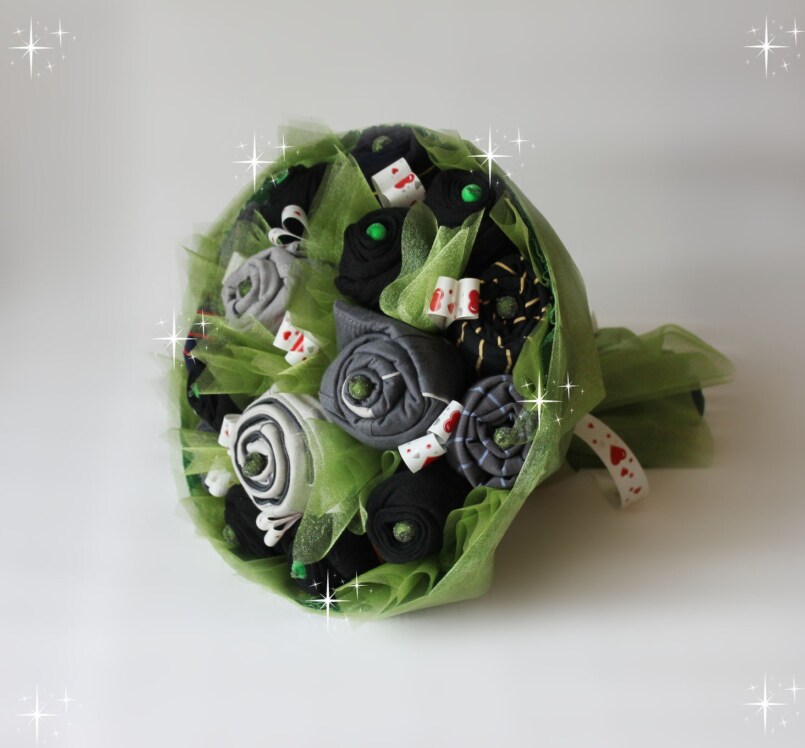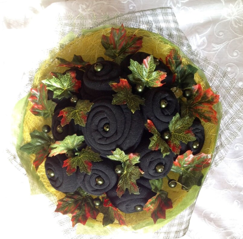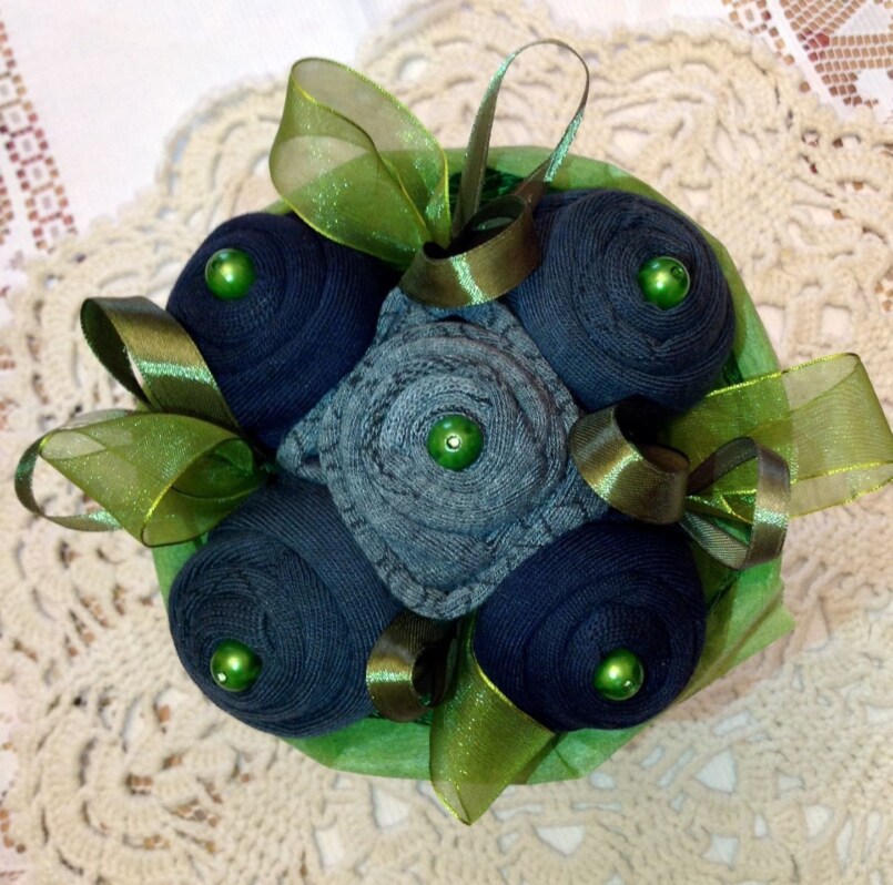 Носков у мужчин никогда не бывает много. Носочный букет восполнит запасы еще на несколько месяцев. Собрать необычный букетик сможет даже пятиклассник.