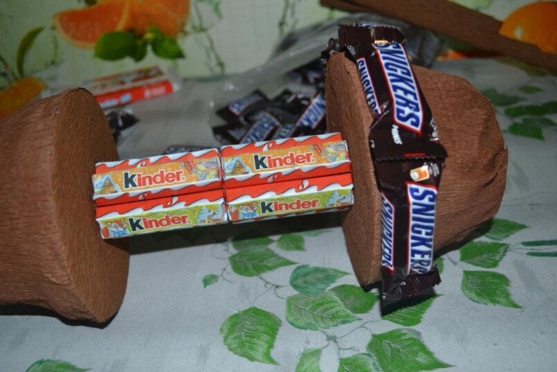 Гантели из конфет