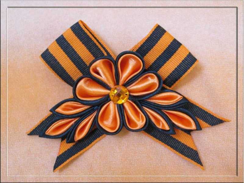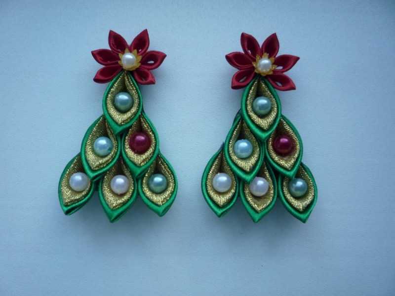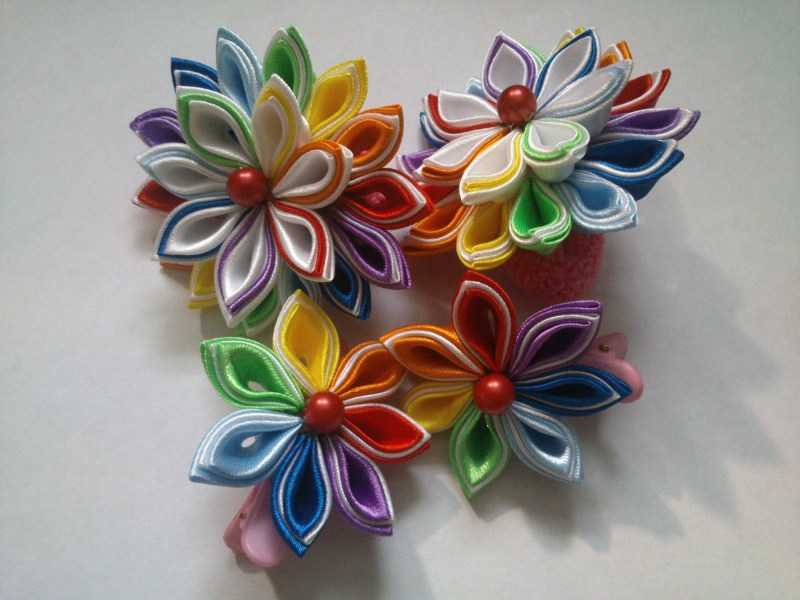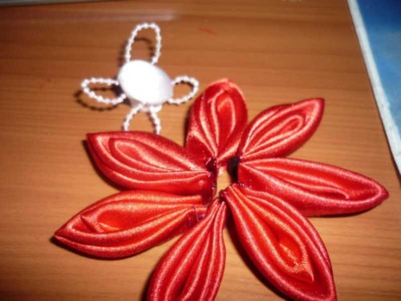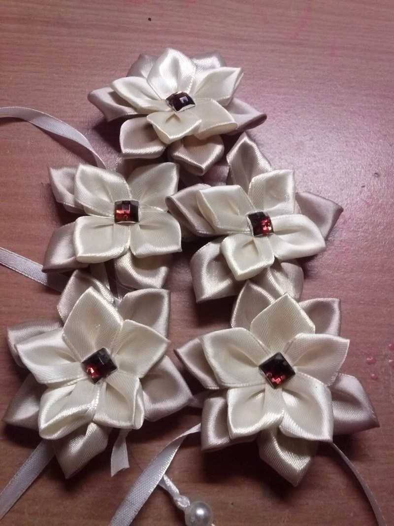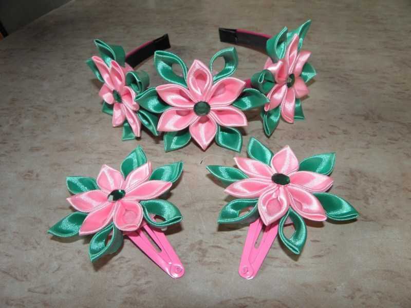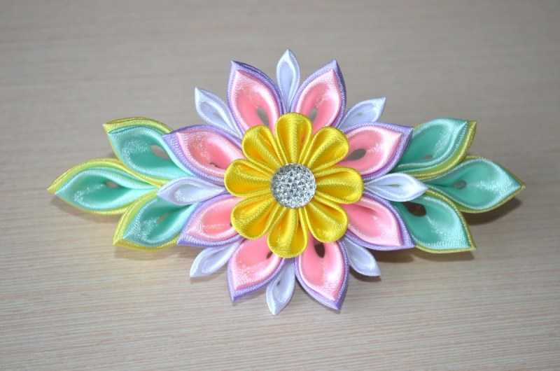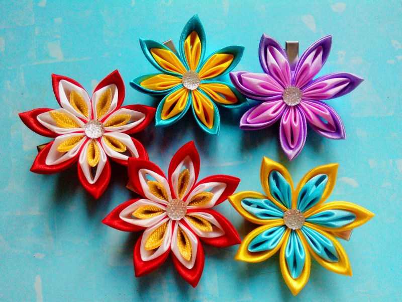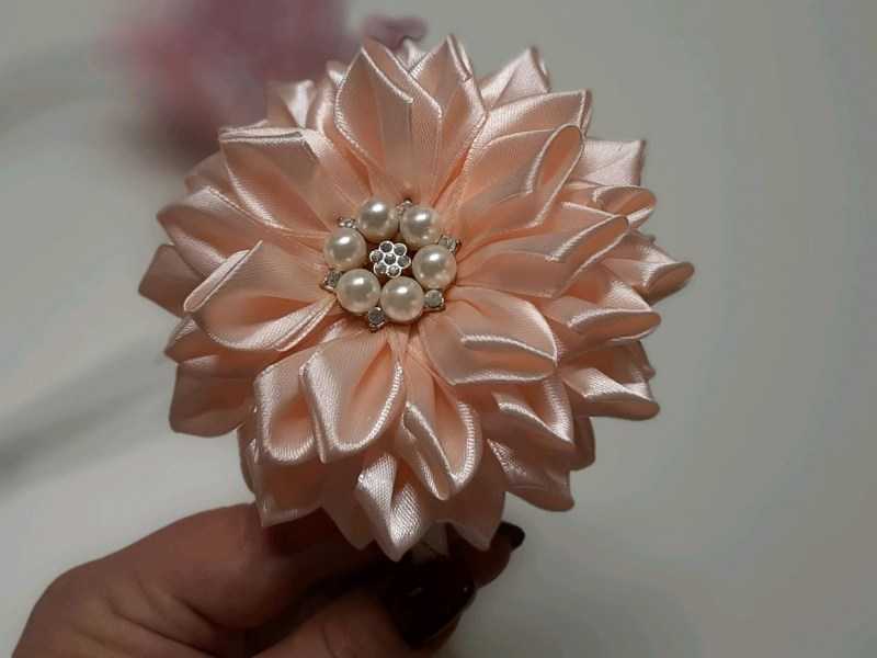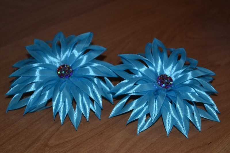 Но не редко выбор падает на яркие цветы в стиле канзаши. Среди цветов из канзаши можно прилепить ленты или большие бусины на тоненькой серебряной проволочке.