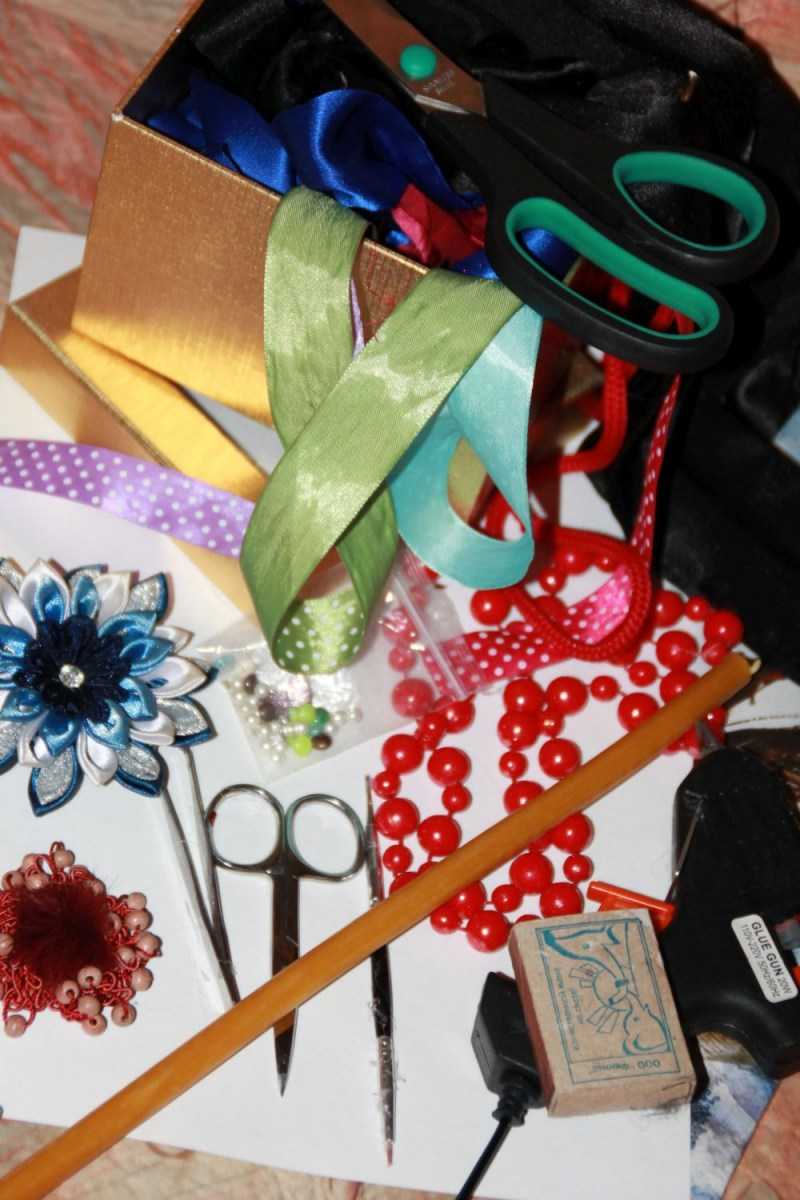 В первую очередь нужно приобрести для выполнения изделия канзаши — это ленты. Но, как кажется на первый взгляд, это еще не весь необходимый материал. Также понадобятся ножницы, чтобы отрезать ленты. Линейка для того, чтобы обмерять необходимую длину. Игла тоже входит в список необходимого. Помимо этого потребуются подходящие по цвету ленты нити.